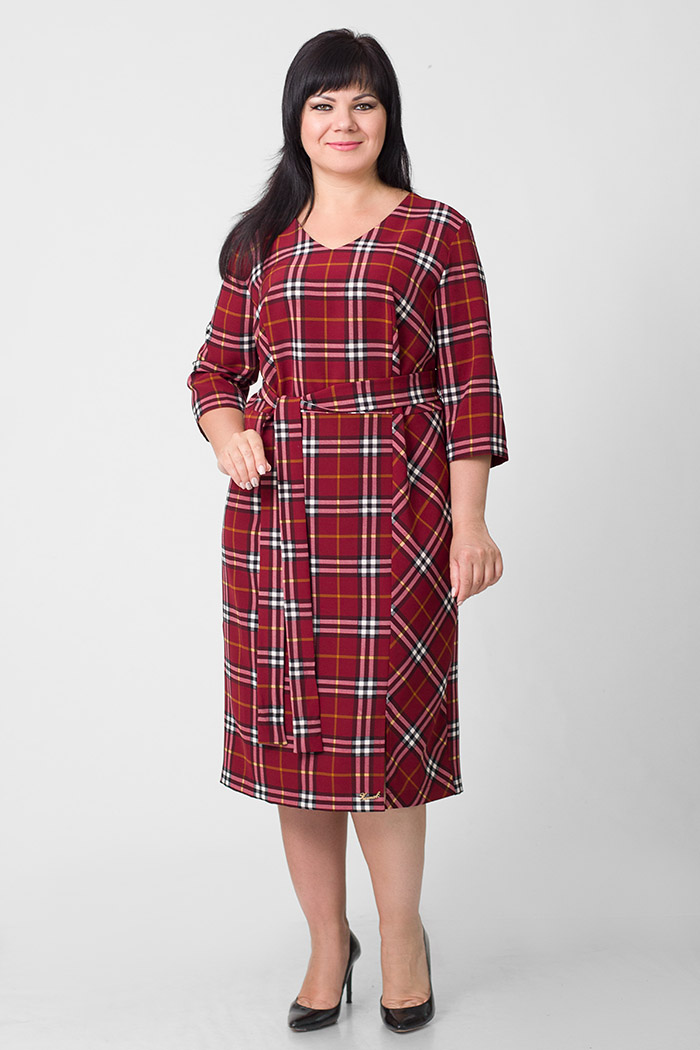 Платье полуприлегающего силуэта с рукавом ¾. Перед отрезной по линии талии, с разрезом по рельефу. Талию можно подчеркнуть навесным поясом. Для того, чтобы купить платье pl4-435.32 большого размера недорого, пожалуйста добавьте товар в корзину.