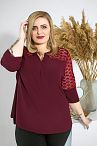 Блуза свободного силуэта выполнена в сочетании 2-х тканей – вискозного шелка и гипюра. На переде вставка в виде планки с V – образным разрезом, мягкая встречная склада по центру. Рукава ¾ с манжетами. В боковых швах разрезы, перед короче спинки. Для того, чтобы купить блуза pl4-446.44 большого размера недорого, пожалуйста добавьте товар в корзину.