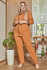 Трикотажный повседневный брючный костюм с отделочной тесьмой. Жакет с застежкой на молнии и рукавом ¾. По бокам разрезы и накладные карманы. Зауженные брюки с застроченными стрелочками и застежкой – гульфик. Пояс с резинкой по спинке. Два боковых кармана. По низу брюк отвороты. Для того, чтобы купить костюм pl4-537.09 большого размера недорого, пожалуйста добавьте товар в корзину.