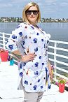 Получила тунику и вот мои впечатления. Ткань невесомая, легкая, очень приятная к телу. В жару 30+ на теле вообще не ощущается, не парит. На размер 54-56 заказывали 52 исходя из замеров изделия, нам подошла хорошо на рост 160, свободная даже. По поводу пошива впечатления неоднозначные, вроде бы швы прошиты хорошо но в воротниковой зоне под воротничком там не обработаны края тонкой подкладки, просто голый срез ткани и это неприятно(( Манжеты на рукавах хотелось бы немного шире, застегнуть то застегнулось, но при попытках руку поднять ощутимо тянет и стягивает. Как итог качество сырья твердая пятерка, по пошиву есть недоработки которые впечатление портят. Сама модель туники интересная, хорошо смотрится и под бриджи и под брючки.