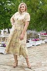 Платье свободного силуэта с цельнокроеным коротким рукавом на манжете. Отрезной лиф с застежкой на пуговицы. По талии лифа настрочная кулиса с завязкой. Юбка с оборкой на сборке. Воротник – стойка Для того, чтобы купить платье pl4-571.1.70 большого размера недорого, пожалуйста добавьте товар в корзину.