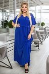 Платье цвета электрик, размер 64 прекрасно село на объем груди 120 см., талия 120 см., бедра 130 см., нигде не обтягивает, не прилегает, не подчеркивает все, что хочется спрятать. Струящееся, очень приятное к телу, легкое, разлетающееся при ходьбе. Цвет красивый, насыщенный-синий, благородный. Платье очень длинное, при моем росте 166 см., оно задевает пол даже на каблуках, в балетках немного ложится на пол, но при ходьбе это так красиво смотрится!!!! Платье очень понравилось, вещи таких размеров редко бывают красивыми, а здесь просто - красота!!!!! Земал - Вы лучшие!!!! Пожалуйста и дальше шейте такие же красивые и яркие вещи больших размеров, мы Вас любим!!!!!! Спасибо большое!!!!!!