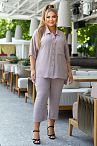 Хороший костюм. Але якщо по розмірній сітці у мене виходило між 54 і 56 розміром. Я взяла 54 і він мені досить вільний. Можна і 52 брати. Колір капучино - такий як на фото. Костюми з цієї тканини- тренд цього літа