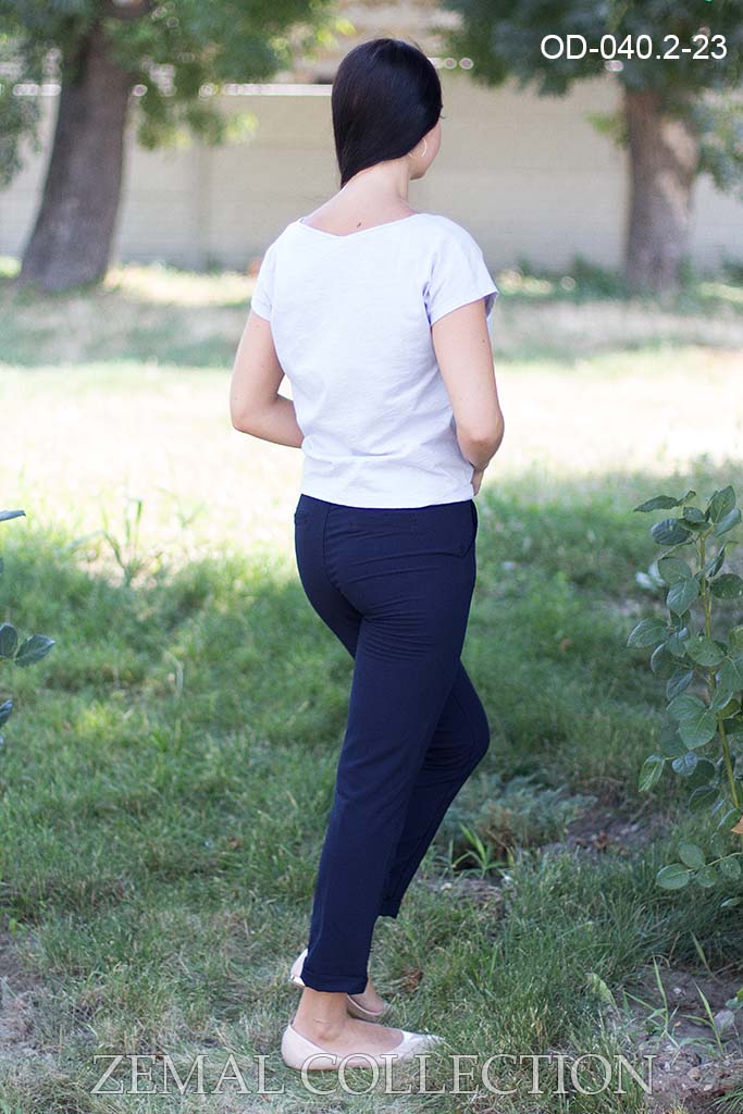 Узкие брюки с манжетами по низу. Впереди гульфик и косые карманы. Сзади листочки имитирующие карманы. В комплекте заказной пояс. Для того, чтобы купить брюки od-040.2 недорого, пожалуйста добавьте товар в корзину.
