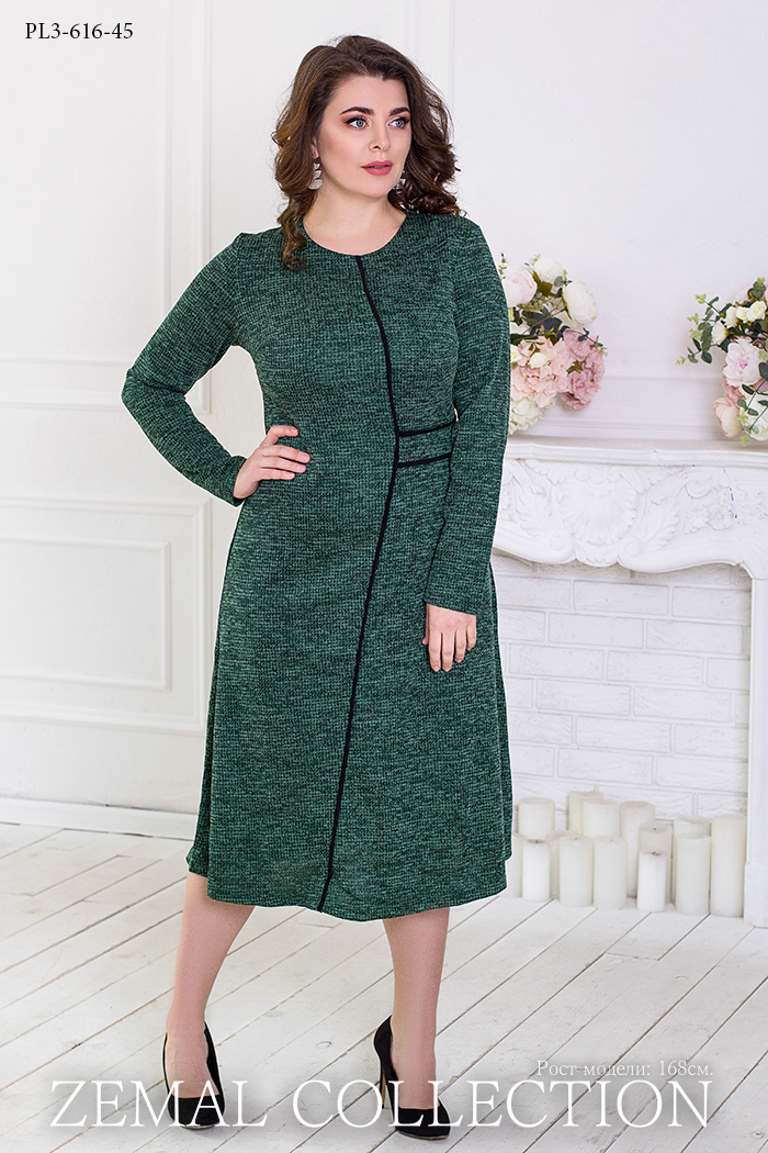 Платье приталенного силуэта, расширенное книзу. Рукав длинный. Ассиметричные фасонные линии переда украшены кантом. Спинка со средним швом. Для того, чтобы купить платье pl3-616 большого размера недорого, пожалуйста добавьте товар в корзину.