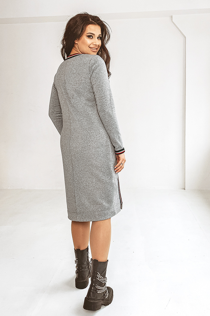 Платье спортивного типа из трёхнитки. Накладной карман – из замшевой отделочной ткани. Отделочная тесьма по горловине и низу рукавов, а также - на переде изделия в области кармана Для того, чтобы купить платье pl4-081 большого размера недорого, пожалуйста добавьте товар в корзину.