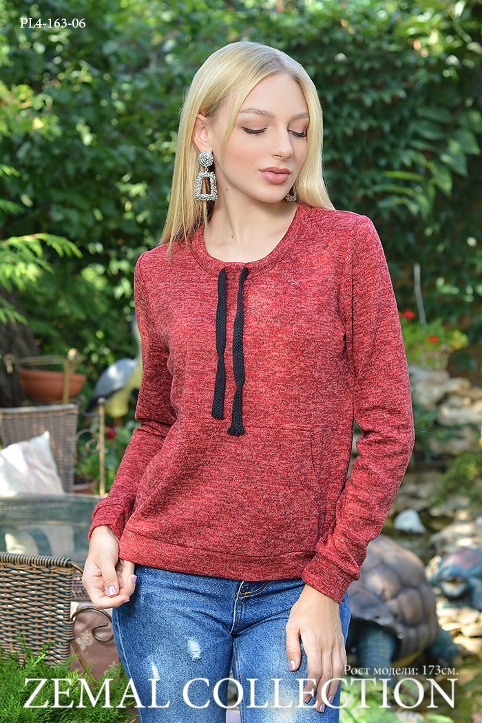 Джемпер из мягкого трикотажа прямого силуэта, рукав длинный, на манжете. Карман – «кенгуру» спереди. В бейку горловины вставлен шнур. Понизу притачной пояс. Для того, чтобы купить джемпер pl4-163 большого размера недорого, пожалуйста добавьте товар в корзину.